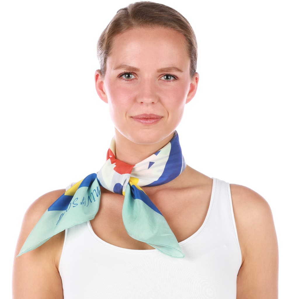 Click through our gallery to see examples of each scarf size being worn. And by the way, both the 33x33cm and 55x55cm work well as pocket squares.